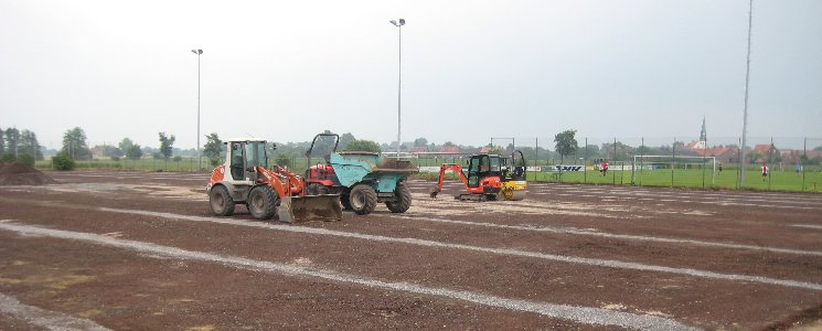 Die Drainage ist fertig verlegt und aufgefüllt worden.